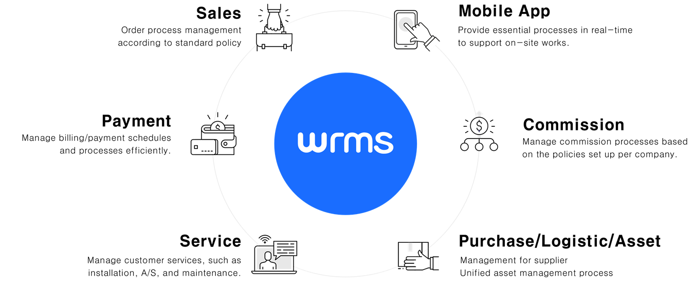 (1) WRMS can be applied to various industriesWRMS can be applied across various industries, including consumer goods and home appliances, as well as construction machinery equipment, healthcare/medical device rental, and financial company rental business.